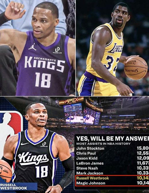 其實(shí)這場(chǎng)比賽賽前對(duì)于威少來(lái)說(shuō)是一場(chǎng)100%的里程碑之戰(zhàn),因?yàn)橘惽八麅H差一次助攻就追平魔術(shù)師的NBA歷史歷史助攻榜第7的位置。