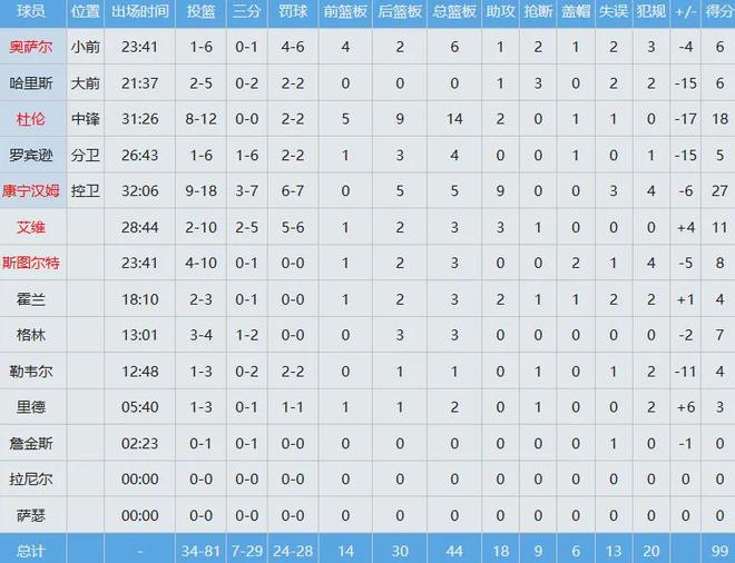 快船數(shù)據(jù)如下: