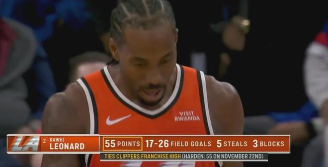 倫納德三節(jié)51分,全場(chǎng)打完投籃26中17,以高達(dá)約65%命中率狂轟55分外加11板2助5斷3帽,帶領(lǐng)快船112-99錘爆東部老大活塞。