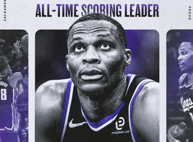 國王隊這邊,威少效率不高,投籃8中3,三分3中1,得到7分2籃板2助攻。