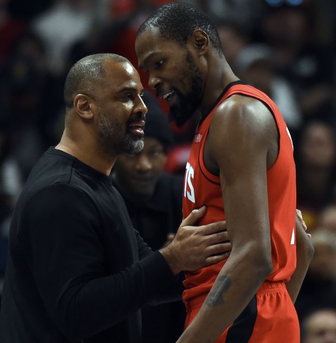 但領(lǐng)袖是要扛事的,而不是把責(zé)任撇清的,所以以前他所在的球隊(duì),籃網(wǎng)三年換三個(gè)教練,太陽(yáng)三年換三個(gè)教練,離開(kāi)勇士換6個(gè)教練,一共才贏兩輪系列賽,這是有原因的。杜蘭特在場(chǎng)上動(dòng)不動(dòng)就甩手,就沮喪就抱怨,你自己都沒(méi)心氣兒了,你讓隊(duì)友怎么辦呢?