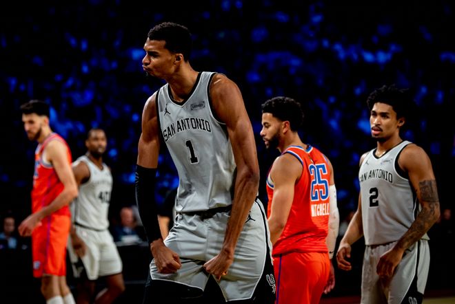 這一“田忌賽馬”式的策略,讓文班亞馬避開了雷霆主力陣容的鋒芒,待對方核心體力下滑時,再派上這位狀元秀領銜的第二陣容收割比賽。 在不到26分鐘的出場時間里,文班亞馬就能高效貢獻19分11籃板的兩雙數(shù)據(jù)。