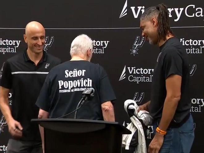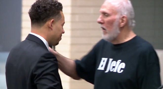 在米奇任職馬刺隊主教練的發(fā)布會現(xiàn)場,穆雷從新奧爾良來到圣安東尼奧,為米奇送上鼓勵和祝福。