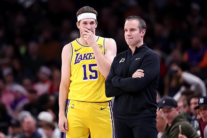 本場比賽中,其實湖人后場大將奧斯汀-里夫斯(Austin Reaves)也算是球隊先發(fā)陣容中表現(xiàn)比較好的球員了。里夫斯全場出場14分48秒,投籃8中5,三分線外5中2,得到了12分1籃板1助攻1蓋帽的數(shù)據(jù),還有2次失誤,正負值為-7。里夫斯在有限的出場時間內(nèi)也是展現(xiàn)出了自己不錯的得分能力,他也有著豐富的進攻手段,確實是在進攻端為球隊提供了不少的幫助和支持。里夫斯的個人防守能力比較有限,這一點大家也都知道,但是在本場比賽中,里夫斯也絕對算不上是湖人全隊防守表現(xiàn)最差的球員了。然而問題就在于,里夫斯在上半場比賽中就因傷提前離場,下半場更是完全沒打。受到出場時間的限制,他也是很難發(fā)揮出更大的作用了。如果里夫斯能夠保持健康,以他在進攻端的狀態(tài),湖人應該也能夠稍微少輸一些。
