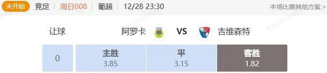 綜合來看,兩支球隊實力定位相近,但本賽季吉維森特戰(zhàn)績十分出色,阿羅卡則表現欠佳。不過過往交手中,阿羅卡占據絕對優(yōu)勢,十七次交手保持不敗,這是巨大優(yōu)勢。從各大機構數據來看,給到主隊受讓二檔的讓步,對主隊支持力度明顯不足。此役或是吉維森特打破交手不勝局面的絕佳機會,看好吉維森特取勝。