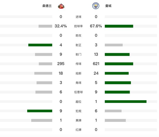 曼城各項賽事8連勝終結(jié),19輪后積41分,被榜首的阿森納拉開4分的分差。而桑德蘭本賽季英超主場繼續(xù)不敗,取得5勝5平的傲人戰(zhàn)績。