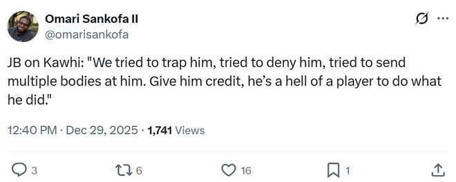 球隊核心小卡無疑是快船隊能夠在逆境中強勢反彈的關(guān)鍵,本場小卡更是火力全開打出生涯之夜。