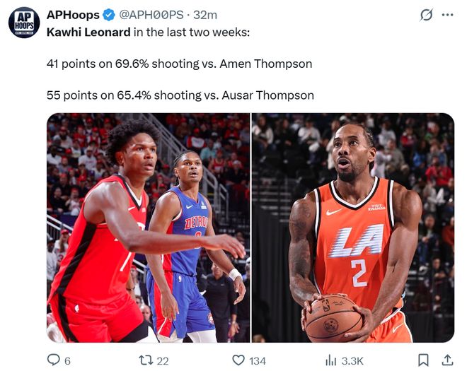 前一場大比分擊敗開拓者賽季首次拿下3連勝后,高歌猛進(jìn)的快船隊迎來與活塞隊的較量,后者本賽季成為聯(lián)盟最大黑馬,賽前高居?xùn)|部第一。