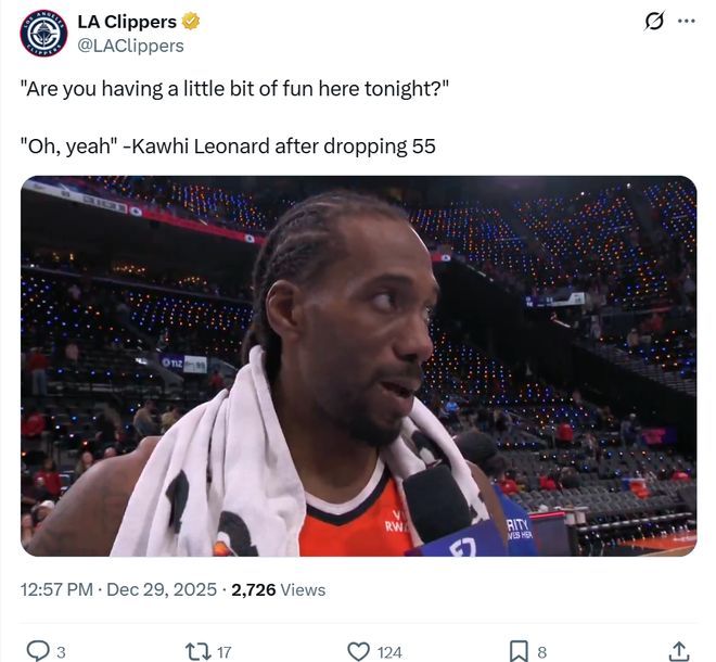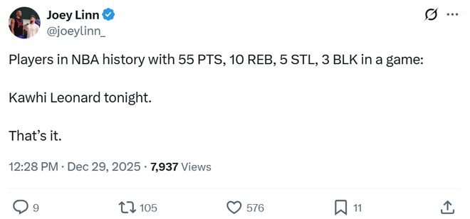 轟55分11板5斷3帽,小卡成NBA歷史首人!快船斬東部第一豪取4連勝