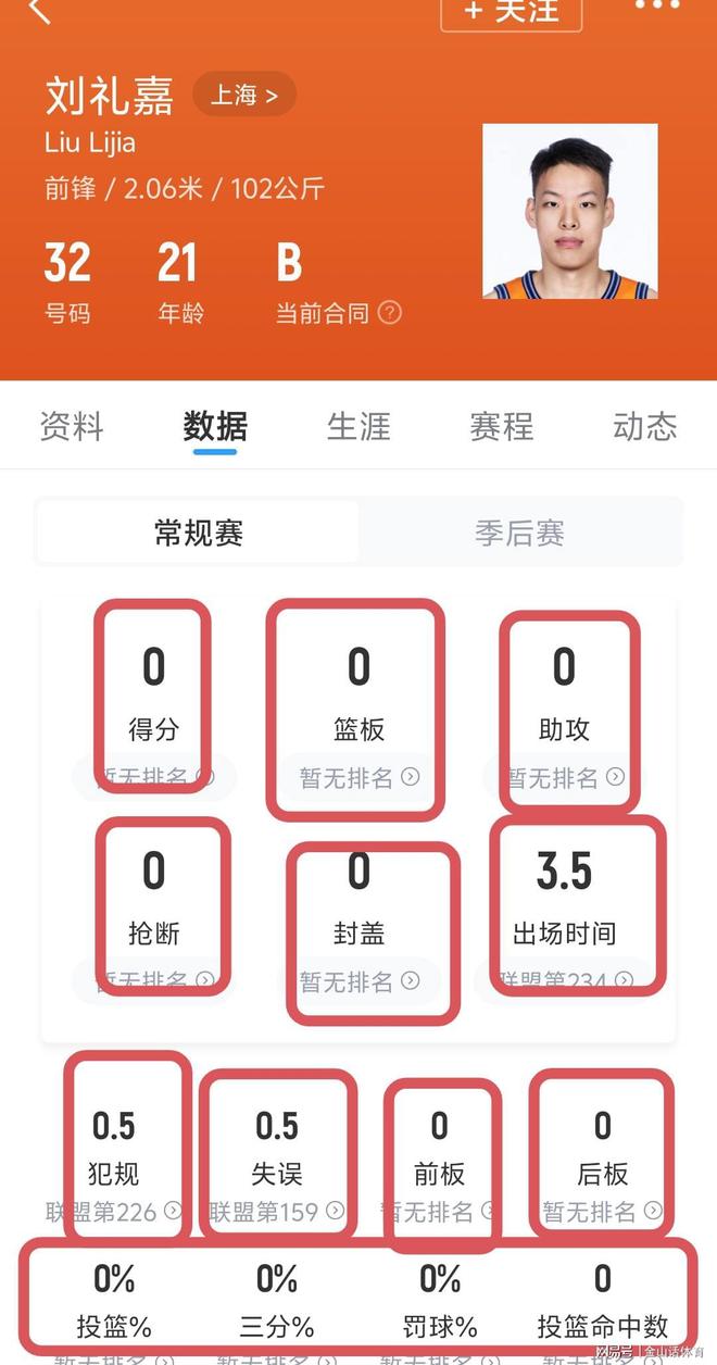 上一輪打同曦,這位替補中的替補,板凳中的板凳,上場2分鐘左右,11項技術(shù)統(tǒng)計數(shù)據(jù),同樣全是0。當筆者打開劉禮嘉本賽季的數(shù)據(jù)庫,呵呵,一色的“0”字頭,直接亮瞎了老夫的雙眼……