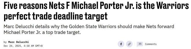 根據(jù)Clutchpoints報道,籃網(wǎng)隊正在積極兜售小邁克爾-波特,勇士隊已經(jīng)向籃網(wǎng)隊詢價,雙方圍繞小波特與庫明加討論過交易方案。