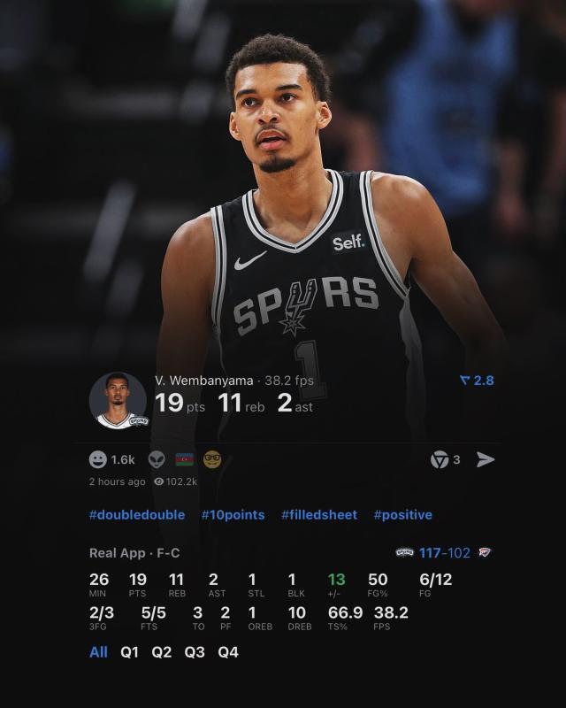 下半場比賽,當(dāng)馬刺的手感終于開始冷卻時,他們又靠著堅實的防守繼續(xù)領(lǐng)跑??苾?nèi)特和文班亞馬鎮(zhèn)守籃下,協(xié)作流暢的強(qiáng)側(cè)協(xié)防,頗具針對性地考驗雷霆角色球員的三分回應(yīng)...當(dāng)卡魯索終于在第三節(jié)投中了個人本場的第一個三分球時,雷霆得到的不是起勢,而是一種自我慰藉,因為他們?nèi)牭谌?jié)就投中一記三分,12中1。