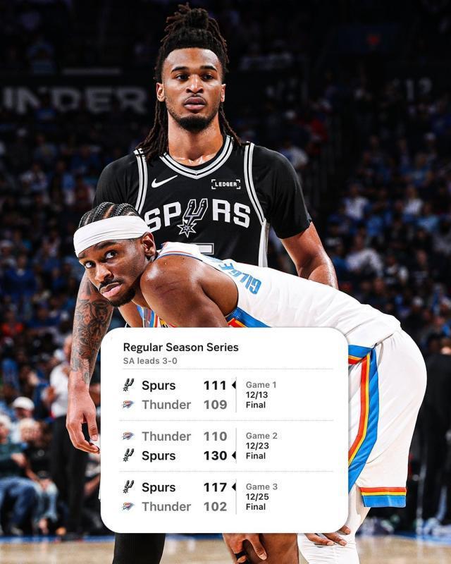 這并不是一場普通意義上的比賽。雷霆時隔7年重返圣誕大戰(zhàn)舞臺,這是亞歷山大時代的他們第一次獲得這樣的機(jī)會。與此同時,這也是雷霆兩負(fù)馬刺之后第一次主場面對這一對手,截至本場比賽之前,雷霆本賽季主場14戰(zhàn)全勝,未嘗一敗。上一場賽后,馬刺球星文班亞馬提到:“下場比賽雷霆會拿出前所未有的專注度,他們會成為一支足智多謀的球隊?!?/p>
