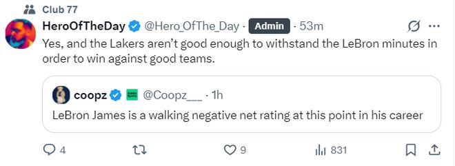 美媒HOT轉(zhuǎn)推后寫道:沒錯,湖人的硬實(shí)力無法承擔(dān)勒布朗高超長的登場時間,所以無法在打強(qiáng)隊時取勝。