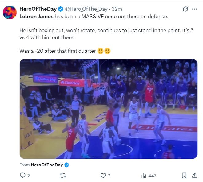 勒布朗轟18+5吞里程悲!在場-33被噴巨大防守漏洞:不卡位+不協(xié)防