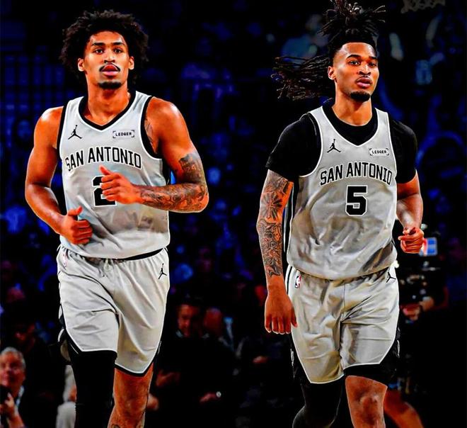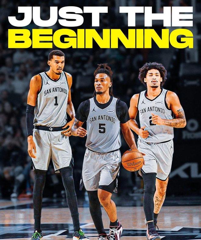 一個(gè)數(shù)據(jù)是這樣:本賽季,當(dāng)文班亞馬、卡斯?fàn)?、哈珀同時(shí)在場(chǎng)時(shí),馬刺百回合可以凈勝對(duì)手54.5分,因?yàn)闃颖静粔蚨啵ㄖ挥?9分鐘),所以說服力不夠高,但別忘了,這三位目前只有21歲、21歲、19歲,馬刺球迷們,真的太幸福了。