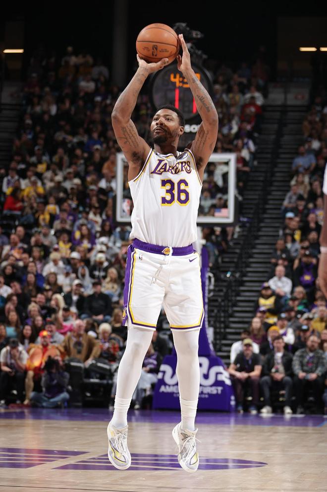 里夫斯傷退,下半場(chǎng)沒(méi)有上場(chǎng),斯瑪特頂替其首發(fā),湖人的進(jìn)攻更加依仗這些邊角料球員三分的隨機(jī)性。