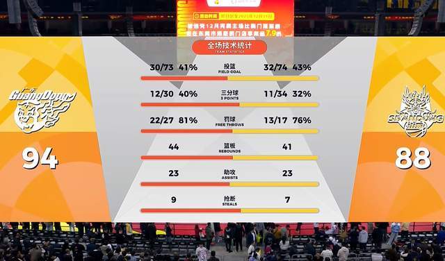 末節(jié)決戰(zhàn),山東男籃打出4-0,追到75-75平,之后又戰(zhàn)至77-77平、81-81平。陶漢林一度吃到違體犯規(guī)。廣東隊(duì)抓住機(jī)會(huì),再次領(lǐng)先。最終,廣東男籃有驚無(wú)險(xiǎn)地以94-88擊敗山東男籃,拿到開(kāi)賽6連勝。而山東男籃則是吞下2連敗。