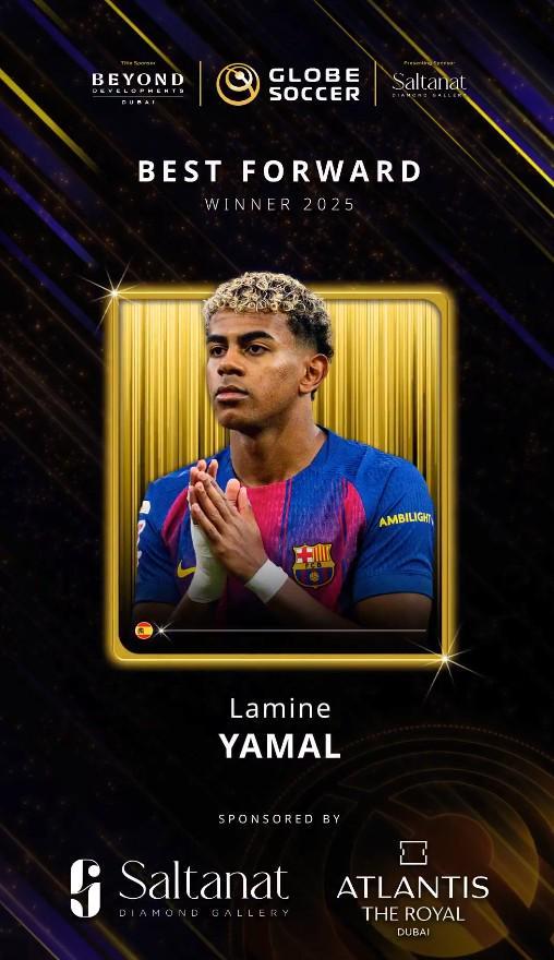 官方:亞馬爾當(dāng)選環(huán)球足球獎(jiǎng)2025年最佳前鋒