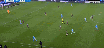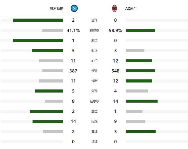 第22分鐘,邁尼昂撲救脫手,驚出紅黑軍團一身冷汗,好在埃爾馬斯的打門沒有命中目標,第37分鐘AC米蘭獲得反擊機會,薩勒馬科爾斯帶球推進到前場后,分給了無人盯防的恩昆庫,但后者的打門放了高射炮,逃過一劫的那不勒斯,在2分鐘之后打破場上平衡,邁尼昂左路下底傳中,造成邁尼昂脫手,內(nèi)雷斯補射建功,幫助那不勒斯取得了1-0的領(lǐng)先。