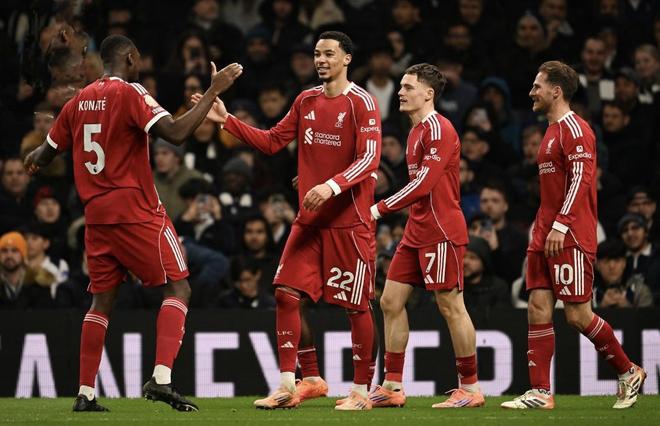 利物浦最近四輪保持不敗,積分榜排名第8,少賽一場(chǎng)落后榜首11分,衛(wèi)冕希望并不大了。熱刺表現(xiàn)同樣不佳,前16輪6勝4平6負(fù),僅排在第13位,下賽季歐冠資格懸了。歷史交手戰(zhàn)績(jī)方面,最近12次交手,利物浦8勝2平2負(fù)占據(jù)優(yōu)勢(shì),特別是上賽季利物浦主客場(chǎng)雙殺熱刺,兩場(chǎng)比賽打進(jìn)11球。利物浦繼續(xù)4231陣型出戰(zhàn),?;倏隧斣阡h線,維爾茨、麥卡利斯特和索博斯洛伊緊隨其后,瓊斯和赫拉芬貝赫搭檔后腰,后衛(wèi)線依次為凱爾凱茲、范戴克、科納特和布拉德利,門(mén)將位置依然是阿利松。