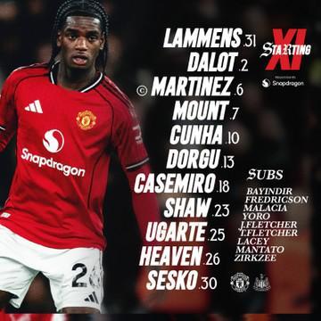 北京時(shí)間12月27日4:00,英超第18輪焦點(diǎn)戰(zhàn),曼聯(lián)坐鎮(zhèn)老特拉福德球場迎戰(zhàn)紐卡斯?fàn)柭?lián),本場主裁判為安東尼-泰勒,賽前雙方首發(fā)出爐。